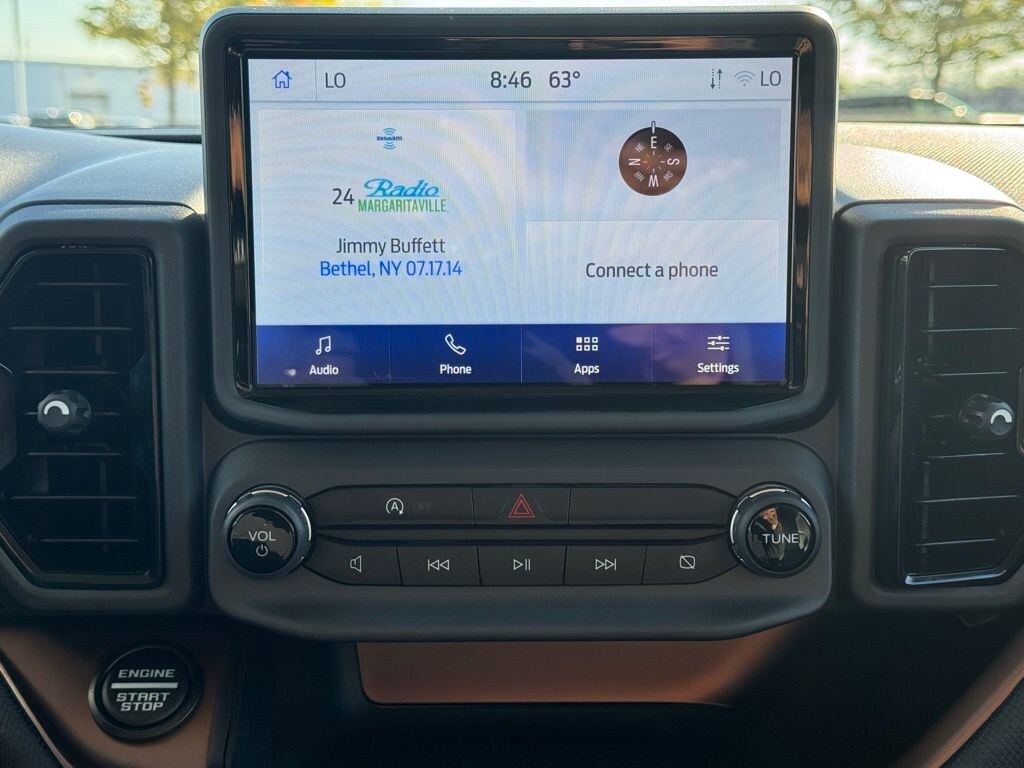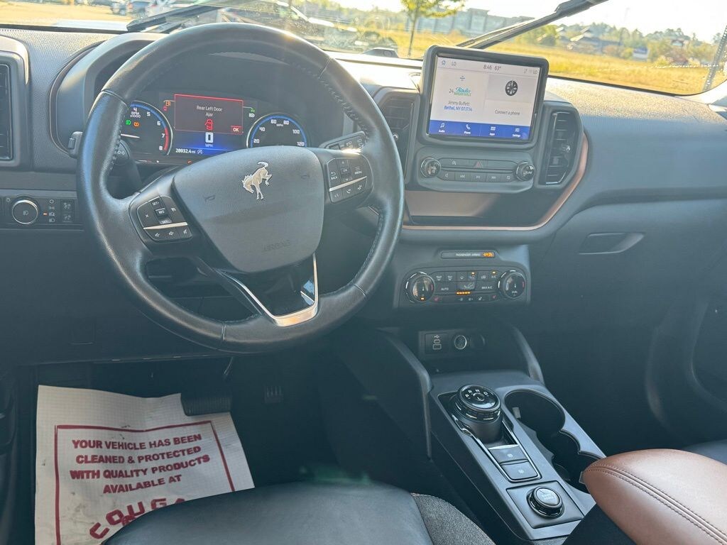 Parker Chrysler Dodge Jeep Ram of Starkville is very proud to present to you this beautiful 2023 Ford Bronco Sport Outer Banksin Shadow Black. This SUV comes equipped with a Class II Trailer Tow Package w/Trailer Sway Control, Equipment Group 300A, Tech Package (HD Radio, Universal Garage Door Opener (UGDO), and Wireless Charging Pad), 3.80 Axle Ratio, 4-Wheel Disc Brakes, 4G LTE Wi-Fi Hotspot Credit, 6 Speakers, ABS brakes, Air Conditioning, Alloy wheels, AM/FM radio: SiriusXM, AM/FM Stereo, Auto High-beam Headlights, Auto-dimming Rear-View mirror, Automatic temperature control, Brake assist, Compass, Delay-off headlights, Driver door bin, Driver vanity mirror, Dual front impact airbags, Dual front side impact airbags, Electronic Stability Control, Emergency communication system: SYNC 3 911 Assist, Four wheel independent suspension, Front & Rear Floor Liners, Front anti-roll bar, Front Bucket Seats, Front Center Armrest, Front dual zone A/C, Front fog lights, Front License Plate Bracket, Front reading lights, Fully automatic headlights, Heated door mirrors, Heated front seats, Heated steering wheel, Illuminated entry, Knee airbag, Leather Trimmed Heated Sport Contour Bucket Seats, Low tire pressure warning, Memory seat, Occupant sensing airbag, Outside temperature display, Overhead airbag, Overhead console, Panic alarm, Passenger door bin, Passenger vanity mirror, Power door mirrors, Power driver seat, Power passenger seat, Power steering, Power windows, Radio data system, Rain sensing wipers, Rear anti-roll bar, Rear Parking Sensors, Rear reading lights, Rear seat center armrest, Rear window defroster, Rear window wiper, Remote keyless entry, Security system, SiriusXM, Speed control, Speed-sensing steering, Speed-Sensitive Wipers, Split folding rear seat, Steering wheel mounted audio controls, SYNC 3 Communications & Entertainment System, SYNC 3/Apple CarPlay/Android Auto, Tachometer, Telescoping steering wheel, Tilt steering wheel, Traction control, Trip computer, Variably intermittent wipers, and Wheels: 18" Ebony Black-Painted AluminumLayoffMouseThisIsTheXYouAreLookingFor.