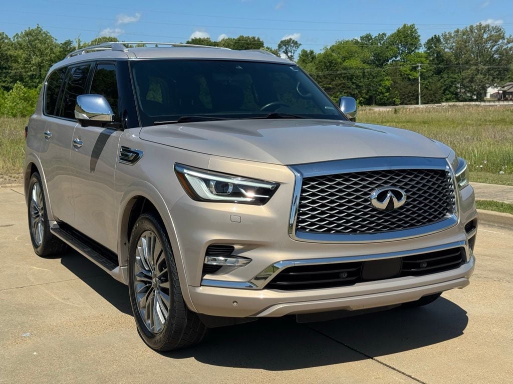 Parker Chrysler Dodge Jeep Ram of Starkville is proud to present to you this stunning 2021 INFINITI QX80 Sensoryin Champagne Quartz. This SUV comes equipped with an All-Season Package (All-Season Floor Mats and Cargo Protector), Cargo Package (First-Aid Kit, High-Density Non-Slip Rear Cargo Carpet, and Nylon-Cord Cargo Net), Navigation system: INFINITI InTouch Navigation, 17 Speakers, 2.937 Axle Ratio, 3rd row seats: split-bench, 4-Wheel Disc Brakes, A/V remote, ABS brakes, Air Conditioning, Alloy wheels, AM/FM radio: SiriusXM, Anti-whiplash front head restraints, Apple CarPlay/Android Auto, Auto High-beam Headlights, Auto tilt-away steering wheel, Auto-dimming door mirrors, Auto-dimming Rear-View mirror, Auto-leveling suspension, Automatic temperature control, Brake assist, Bumpers: body-color, CD player, Climate Controlled Front Bucket Seats, Compass, Delay-off headlights, Driver door bin, Driver vanity mirror, Dual front impact airbags, Dual front side impact airbags, DVD-Audio, Electronic Stability Control, Emergency communication system: INFINITI Connection, Four wheel independent suspension, Front anti-roll bar, Front Bucket Seats, Front Center Armrest, Front dual zone A/C, Front fog lights, Front reading lights, Fully automatic headlights, Garage door transmitter: HomeLink, Headlight cleaning, Headphones, Heated door mirrors, Heated front seats, Heated rear seats, Heated steering wheel, Illuminated entry, Leather Shift Knob, Leather steering wheel, Literature Kit, Low tire pressure warning, Memory seat, Occupant sensing airbag, Outside temperature display, Overhead airbag, Overhead console, Panic alarm, Passenger door bin, Passenger vanity mirror, Power door mirrors, Power driver seat, Power Liftgate, Power moonroof, Power passenger seat, Power steering, Power windows, Radiant Illuminated Kick Plates, Radio data system, Radio: Bose Performance Audio System w/17 Speakers, Rain sensing wipers, Rear air conditioning, Rear anti-roll bar, Rear audio controls, Rear reading lights, Rear seat center armrest, Rear window defroster, Rear window wiper, Reclining 3rd row seat, Remote keyless entry, Roof Rail Cross Bars, Security system, Semi-Aniline Leather Appointed Seats, Speed control, Speed-sensing steering, Split folding rear seat, Spoiler, Steering wheel memory, Steering wheel mounted audio controls, Tachometer, Telescoping steering wheel, Tilt steering wheel, Traction control, Trip computer, Turn signal indicator mirrors, Variably intermittent wipers, Ventilated front seats, Voltmeter, Welcome Lighting, and Wheels: 22" x 8.0" Forged Aluminum-AlloyLayoffMouseThisIsTheXYouAreLookingFor.